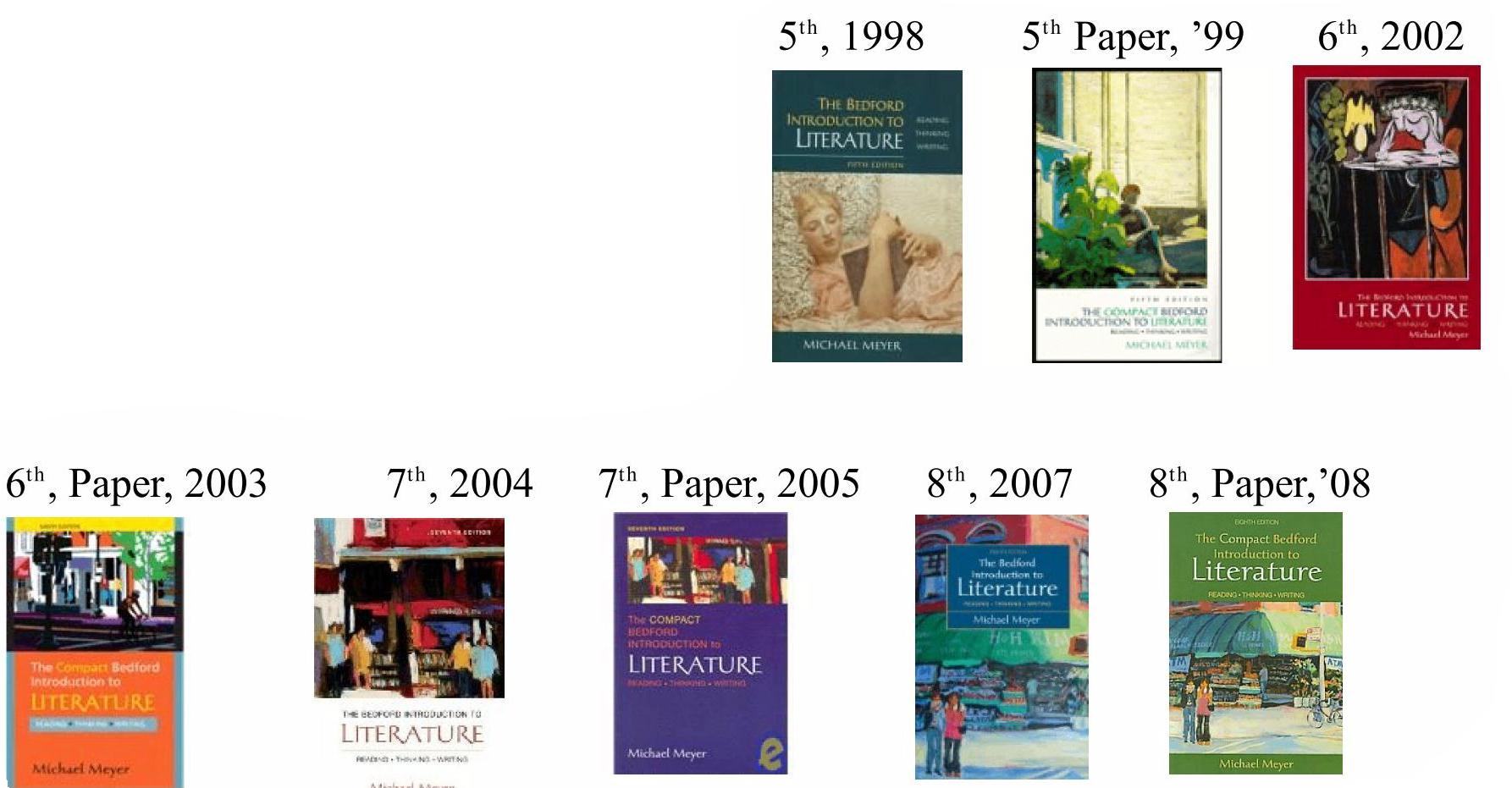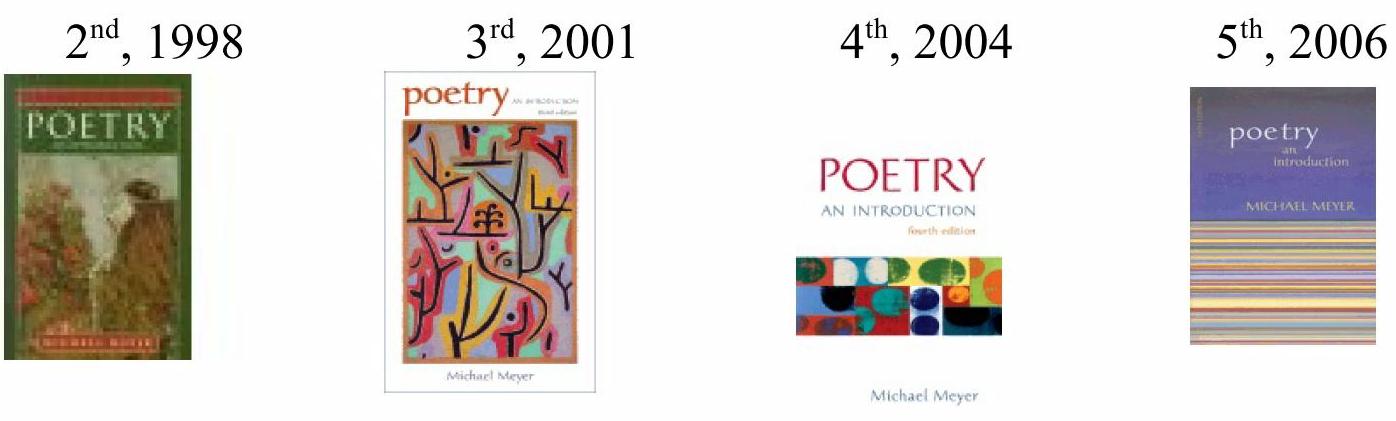 Since 1998, “The Translator at the Reception for Latin American Writers” has been a selection in the following past editions and titles of Bedford/St. Martin’s college texts, hardbound and compact (paperback), The Bedford Introduction to Literature, The Compact Bedford Introduction to Literature, and Poetry: An Introduction, all edited by Michael C. Meyer: